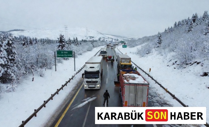 Karayolları Genel Müdürlüğü karla mücadele ekipleri yolu temizledi. Anadolu Otoyolu’nun Gerede çıkışından D-100’e bağlantı da sağlandı artık.